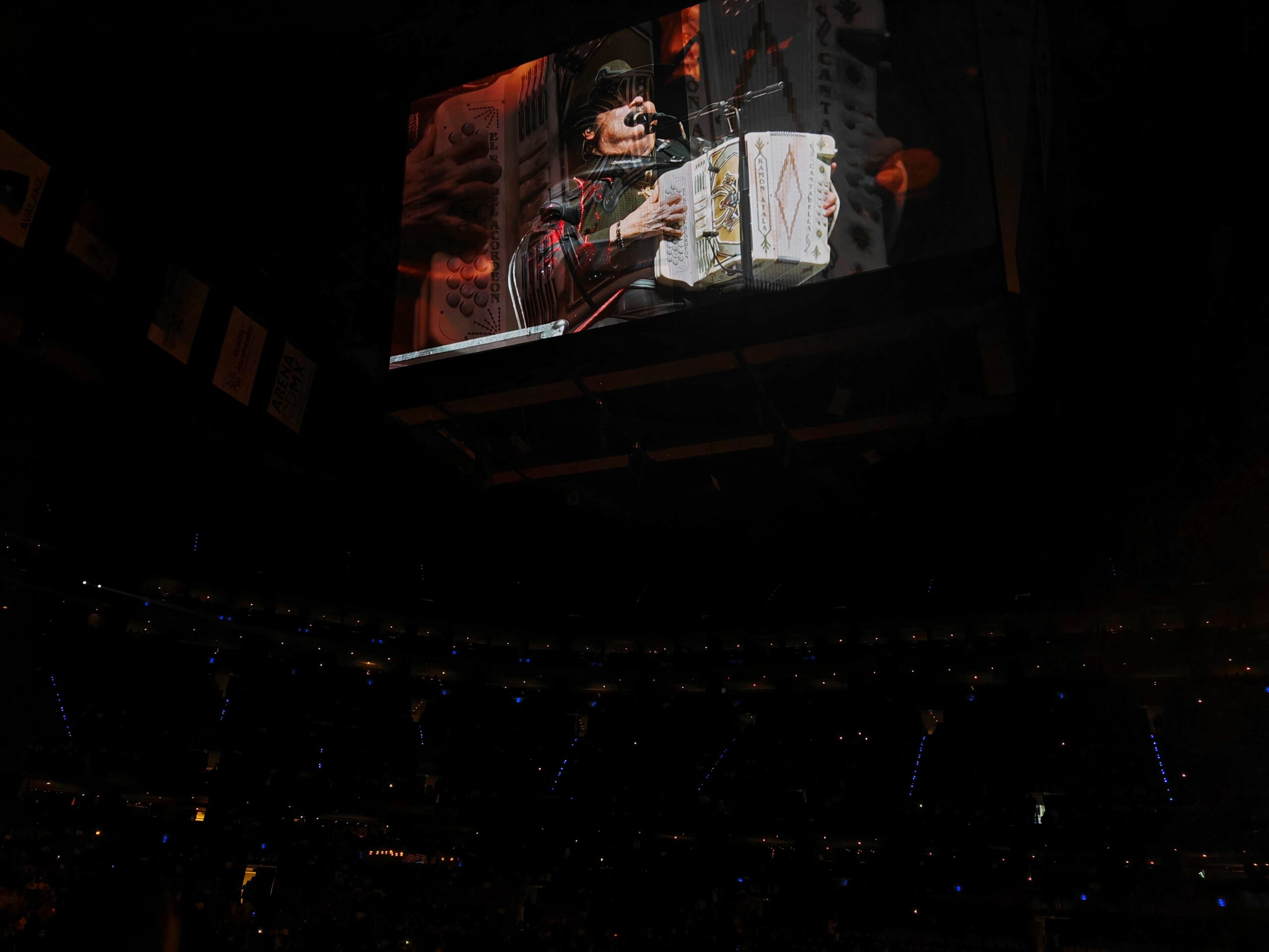 A su llegada, el “Rey del acordeón” pidió disculpas por el retraso, pero prometió una noche a lo grande, y vaya que cumplió. Sentado en el centro del escenario, con su inseparable acordeón como compañero, comenzó su repertorio con “Un puño de tierra”, y la Arena se convirtió en un mar de emociones. Las parejas danzaban en los pasillos, y el ambiente se encendió con cada nota que salía de su acordeón.